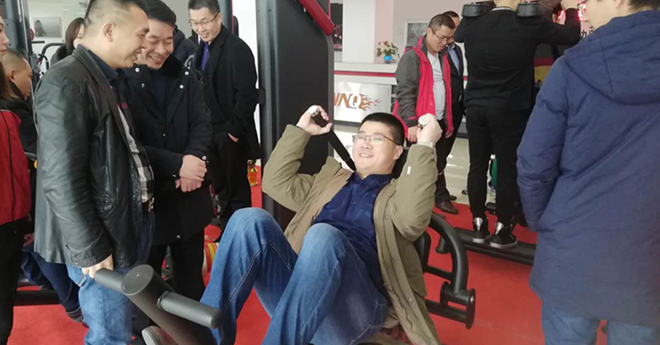 在展廳,我司組織了一場單車競賽,經銷商們踴躍參與。最新開發的單車競賽系統給單車競賽增添了許多新的趣味。比賽過程中大家高喊助威,最終前三名都獲得動感單車獎勵!